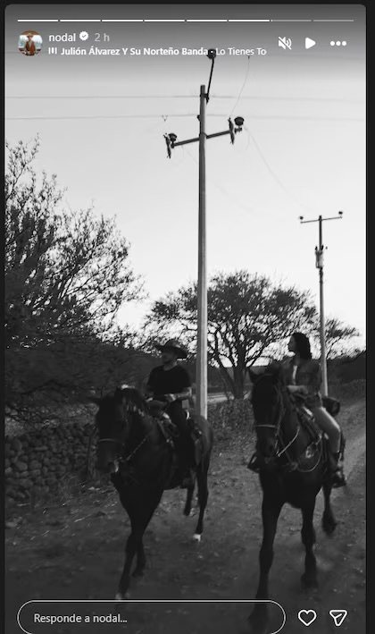 Finalmente, en otra historia de Ángela Aguilarambos aparecen cabalgando juntos, mientras de fondo se escucha “Lo tienes todo” de Julión Álvarez.