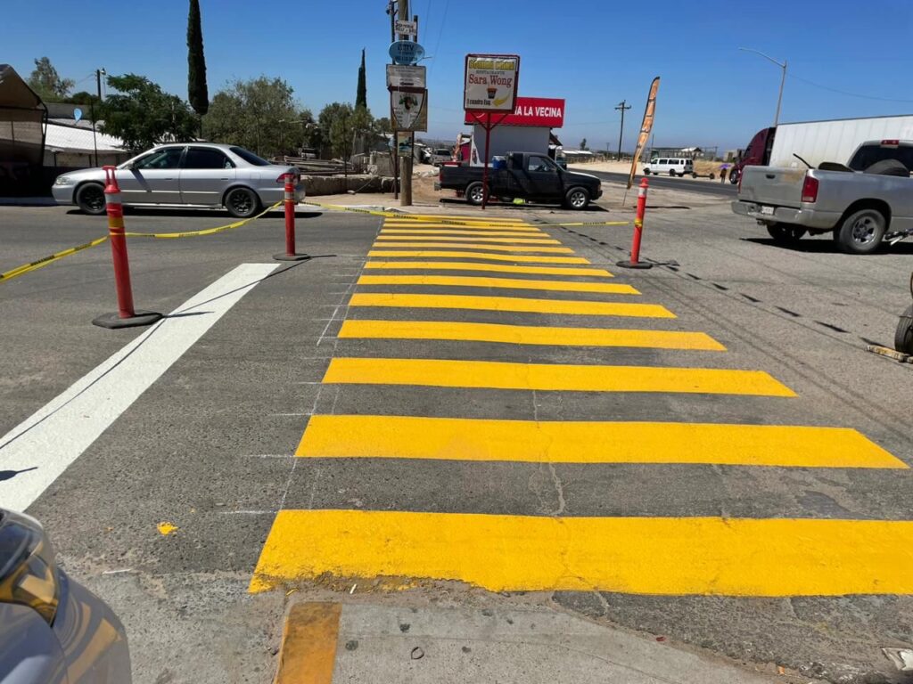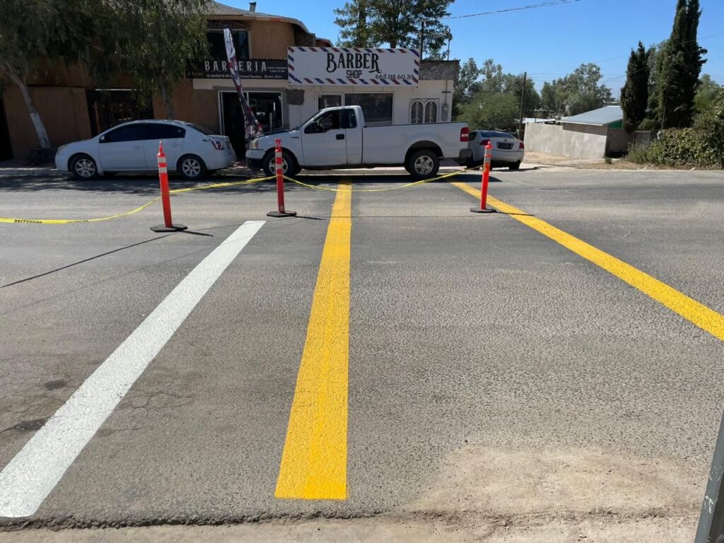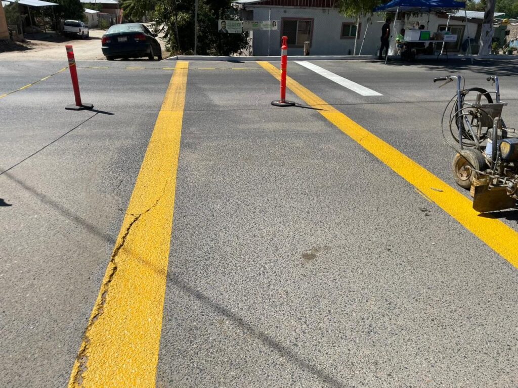 • Delegación Luis Echeverría: Pintado de línea continua amarilla y cruces peatonales en calle Benito Juárez
