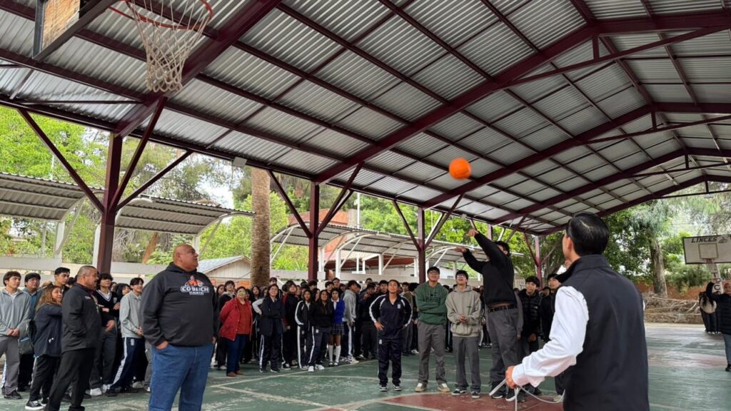 Tecate, Baja California, 27 de abril de 2026.– Como resultado de las gestiones conjuntas entre autoridades educativas y el diputado Humberto Valle, se llevó a cabo la entrega de una techumbre deportiva en las instalaciones del Colegio de Bachilleres (COBACH) en Tecate, durante el tradicional Lunes Cívico.