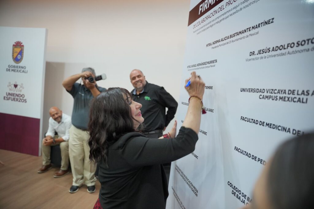 El acto se llevó a cabo en la Universidad Xochicalco, donde se formalizó una alianza estratégica entre el Ayuntamiento de Mexicali, instituciones educativas, organismos empresariales y asociaciones civiles.