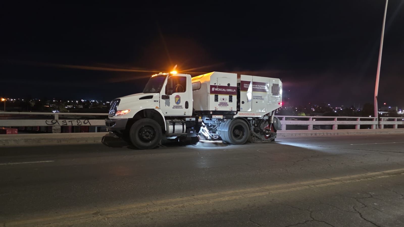 Con el objetivo de mantener una ciudad más limpia, segura y ordenada, el Gobierno de Mexicali continúa realizando labores de mantenimiento urbano durante la noche, aprovechando la baja afluencia vehicular para intervenir puntos clave sin afectar la movilidad de la ciudadanía.