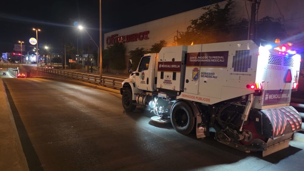 Gobierno de Mexicali refuerza labores nocturnas de limpieza y mantenimiento urbano