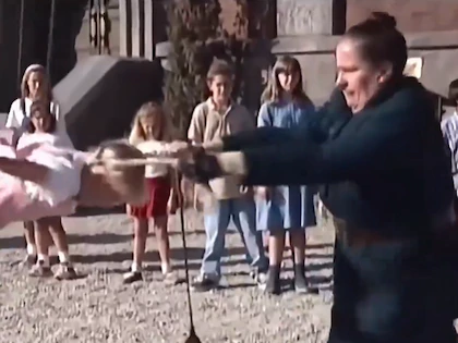 Sin embargo, no todo fue sin incidentes: durante el rodaje de esta secuencia, Pam Ferris sufrió una lesión en el dedo, cuando los cables o hilos que sujetaban la trenza y la actriz se tensionaron demasiado. El hecho quedó documentado por fuentes que señalan que el alambre estaba cosido a las trenzas de la niña y conectado a los dedos de Ferris para que pudiera girarla. Cuando la fuerza fue excesiva, Ferris tuvo que recibir unos siete u ocho puntos de sutura.