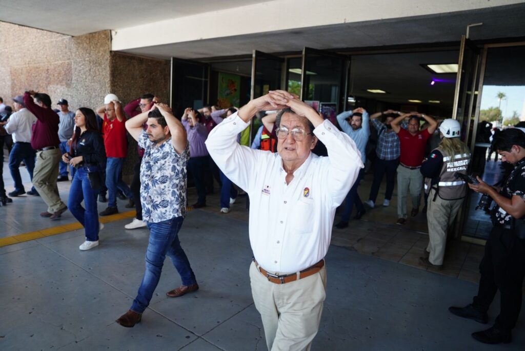 Mexicali, B.C. A 19 de septiembre 2024.- A las 10:00 horas la ciudad de Mexicali se sumó al Simulacro Nacional 2024, a fin de conmemorar los sismos ocurridos el 19 de septiembre de 1985 y 2017 en la Ciudad de México, además de promover una cultura de protección civil.
