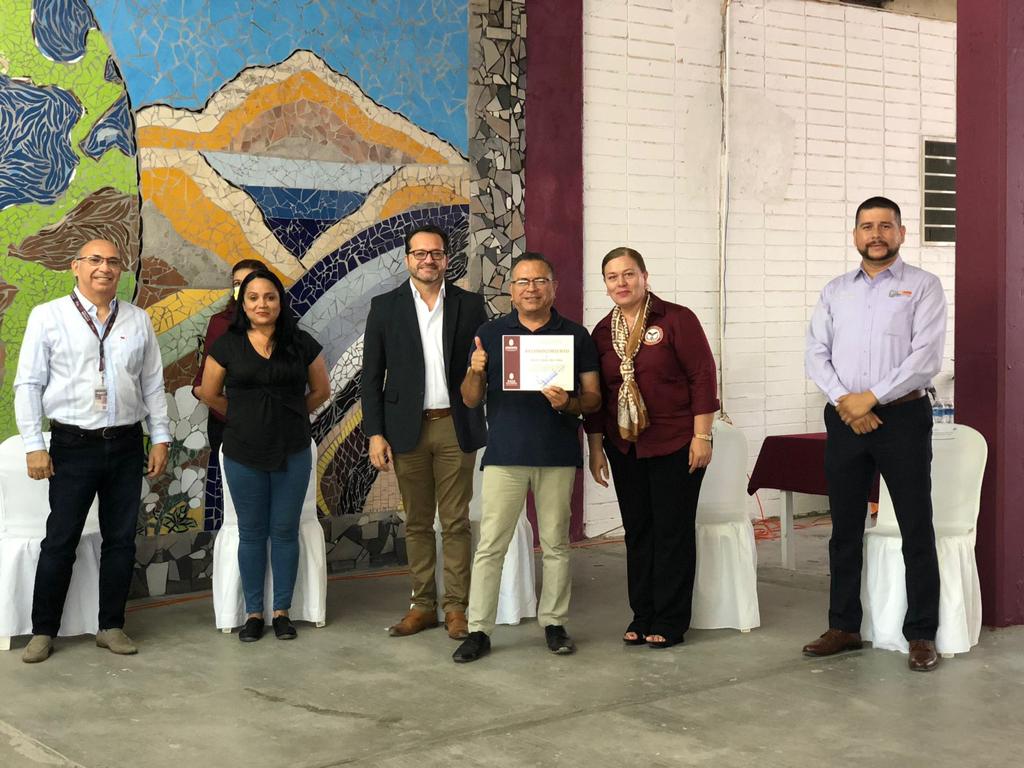 Señalo que en esta ocasión se develo una placa en reconocimiento a los promotores de los talleres, especialmente al director de la Telesecundaria José Ramón Osuna Castro, por el loable trabajo realizado en pro de la reinserción de las y los jóvenes, y especialmente por la elaboración de un enorme mural de 50 por 4 metros, titulado “La vida y la juventud”, que fue elaborado por los alumnos del taller de Mosaico, guiados de la mano del muralista Rodrigo Villa Osuna, con miles de trozos de piezas de loseta en colores brillantes.