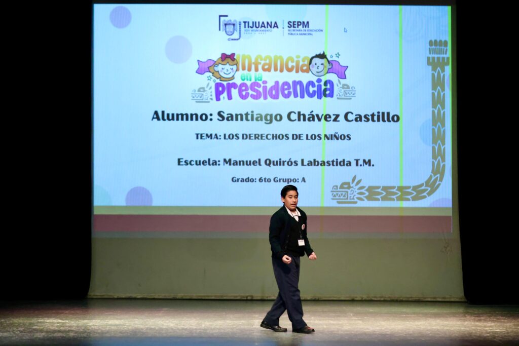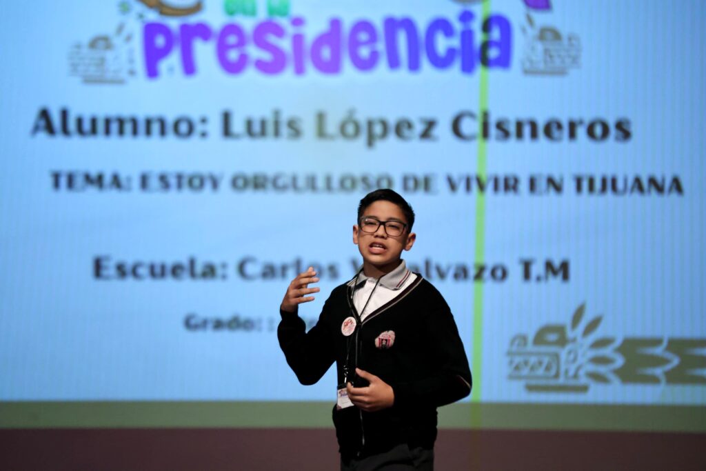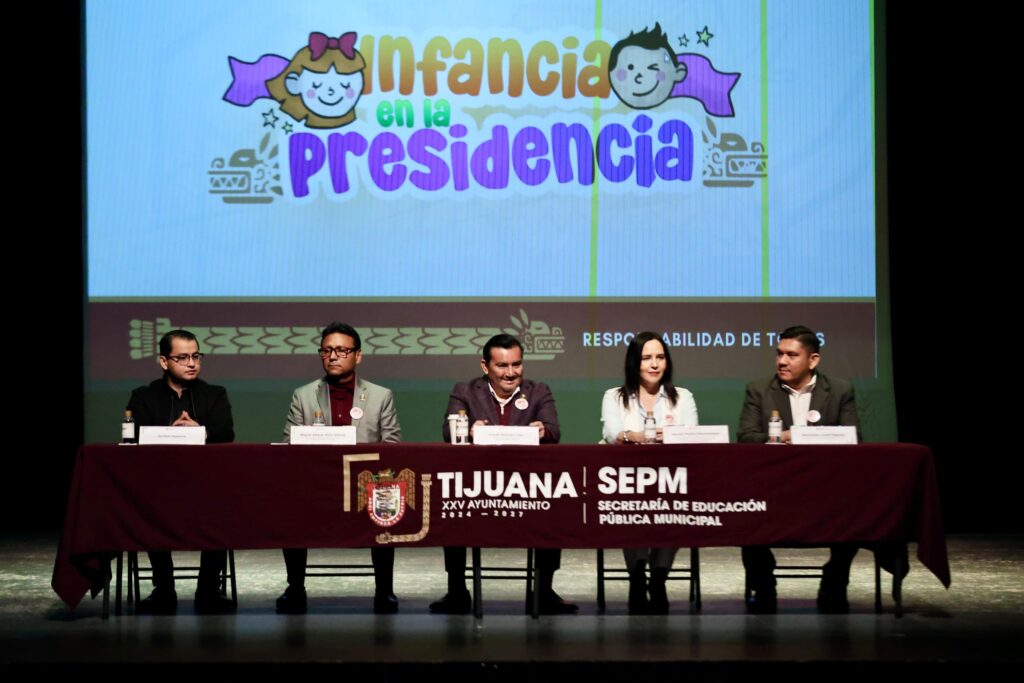 Tijuana, Baja California, 27 de abril de 2026.– El XXV Ayuntamiento de Tijuana llevó a cabo el concurso “Infancia en la Presidencia 2026”, con la participación de 12 alumnas y alumnos de sexto grado de primaria, representantes de escuelas municipales, con el propósito de fomentar la participación ciudadana, la cultura democrática y los valores cívicos desde la niñez.